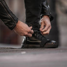 Made from automotive-grade leather, these motorcycle sneakers guarantee extreme durability and breathability, molding to the foot over time for a comfortable and secure fit.