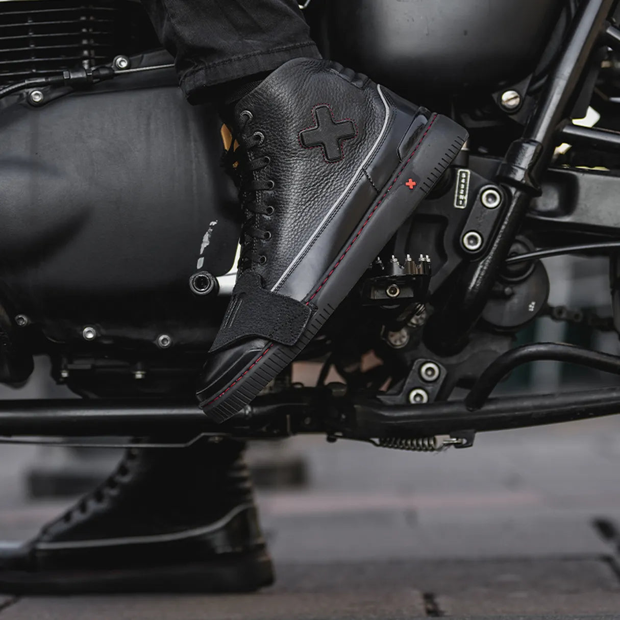 Built to endure the road. Designed with high-resistance leather, D3O® ankle protection, and a Vulka® outsole for superior traction. A reinforced toe keeps you protected, while the removable shifter guard prevents wear from gear changes. Safety, durability, and a design made for those who live the ride without unnecessary distractions.